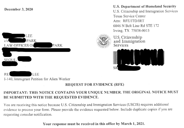다만, 이 부분은 Technical한 싸움이 아니라, 법리적인 싸움이 된다고 합니다. Evidence요구의 정당성부터, 이민법의 조항들을 낱낱이 따지고 물어서 이 정도면 받아줘야한다는 법리로 이민국 담당자와 다투는 것입니다. 따라서, RFE에서야말로 변호사의 전문성의 차이가 드러난다고 할 수 있을 것 같습니다.