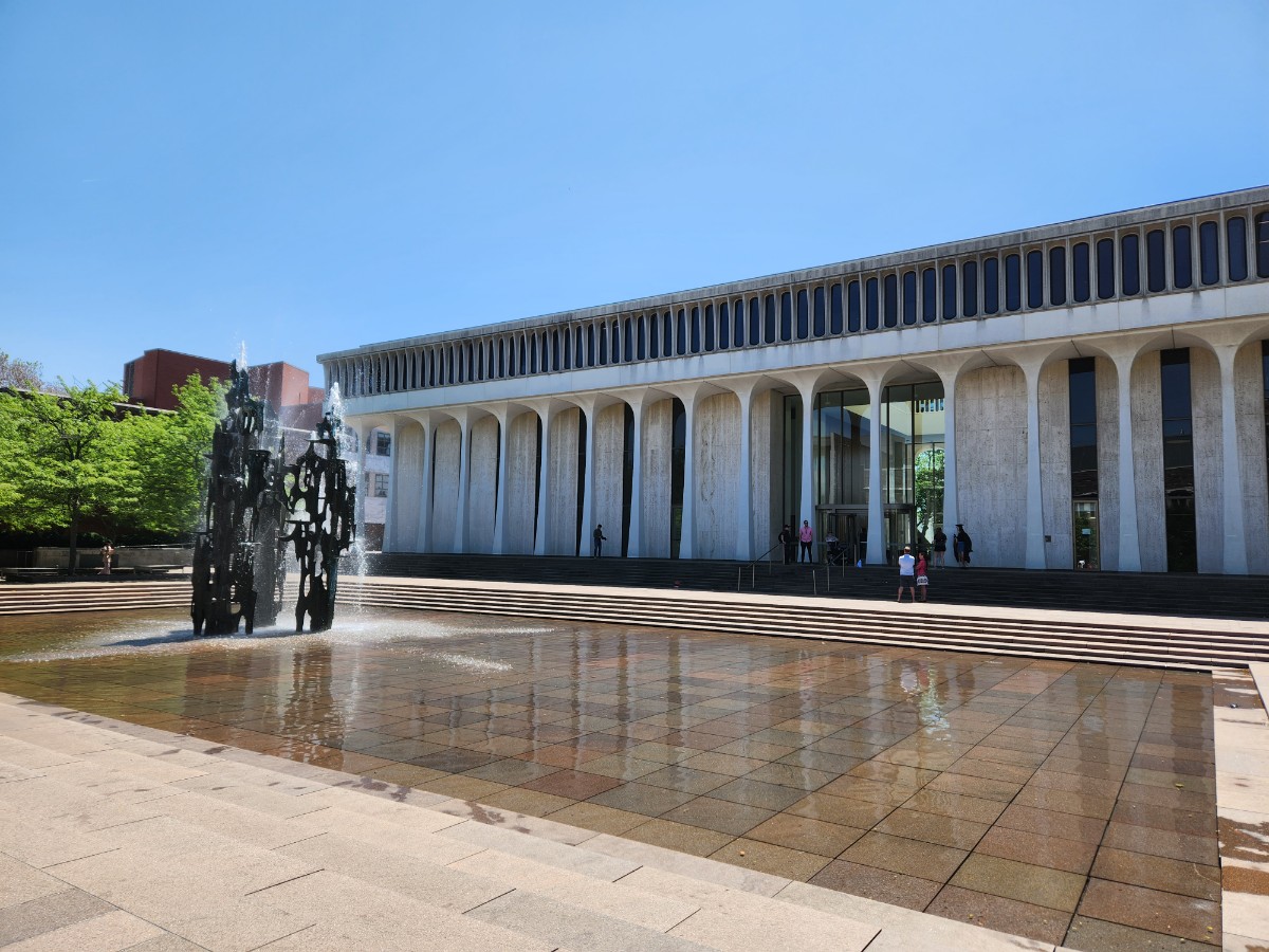 다시 옆으로 이동을 하게되면, Robertson Hall이라는 매우 현대적인 건축물을 만나게 됩니다. 앞에는 분수대가 있어서, 여름에 방문한 우리 가족에게 탁 트인 시원한 경관을 선사했습니다. 안에는 깔끔한 화장실도 있네요ㅎ 지금은 911로 무너진 World trade center를 설계한 사람이 지은 건축물이라 하네요. 지금은 Public and International Affair 학과 강의가 진행되는 곳이라고 합니다.